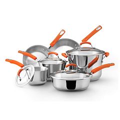 Rachael ray porcelain enamel ii nonstick 10 piece cookware set orange gradient. Silicone handles provides an easy grip that doesnt get as hot as other pots or pans ive used.
