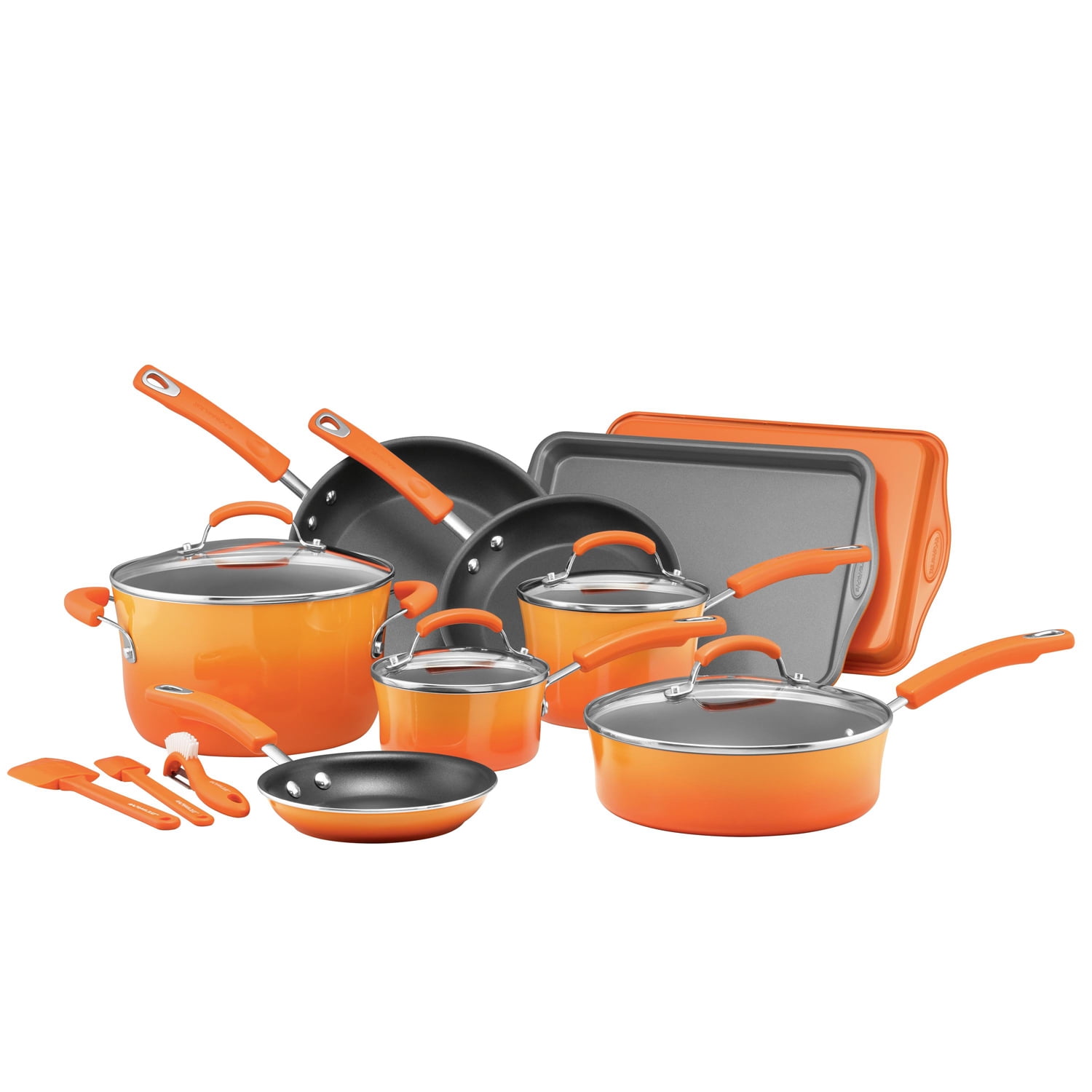 Rachael Ray 16 Piece Hard Enamel Nonstick Cookware Set Orange